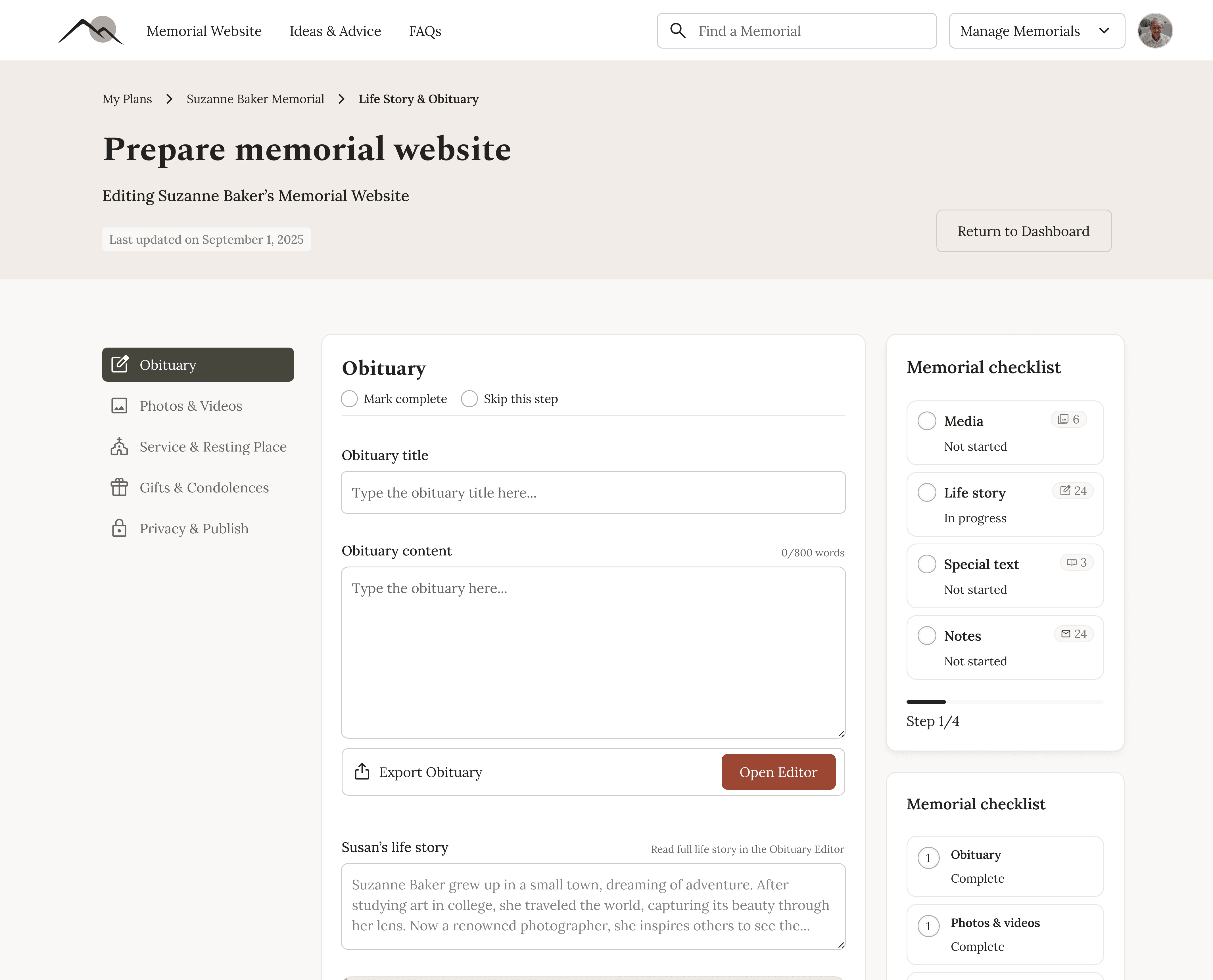 Obituary/Life Story Editor